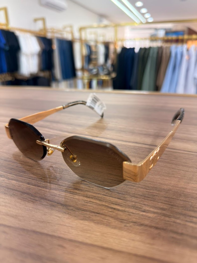Seu visual refinado traduz exclusividade em cada detalhe, unindo armação premium com hastes de acabamento impecável que elevam qualquer produção — do casual chic ao social elegante.