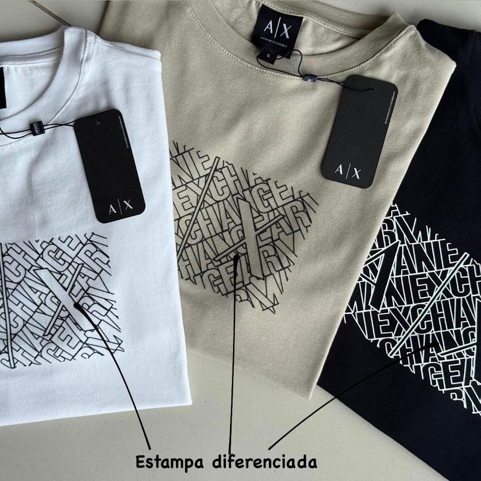 O destaque fica por conta da estampa exclusiva AX no peito, com grafismo diferenciado que cria um visual sofisticado e cheio de personalidade.